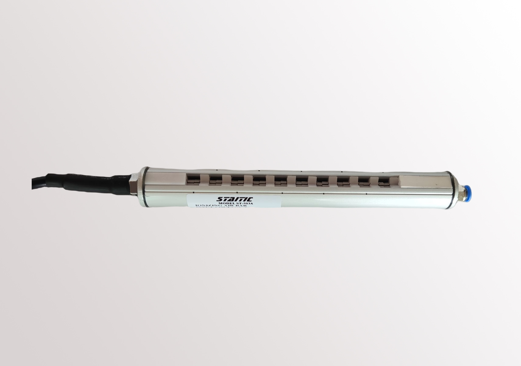 ST-503A離子風棒內置獨特的高風量氣管能迅速中和離子,堅硬的鋁質外殼包著離子針,外型美觀、經(jīng)久耐用。需配用ST403A高壓電源供應器才可以使用(需另外購買)。