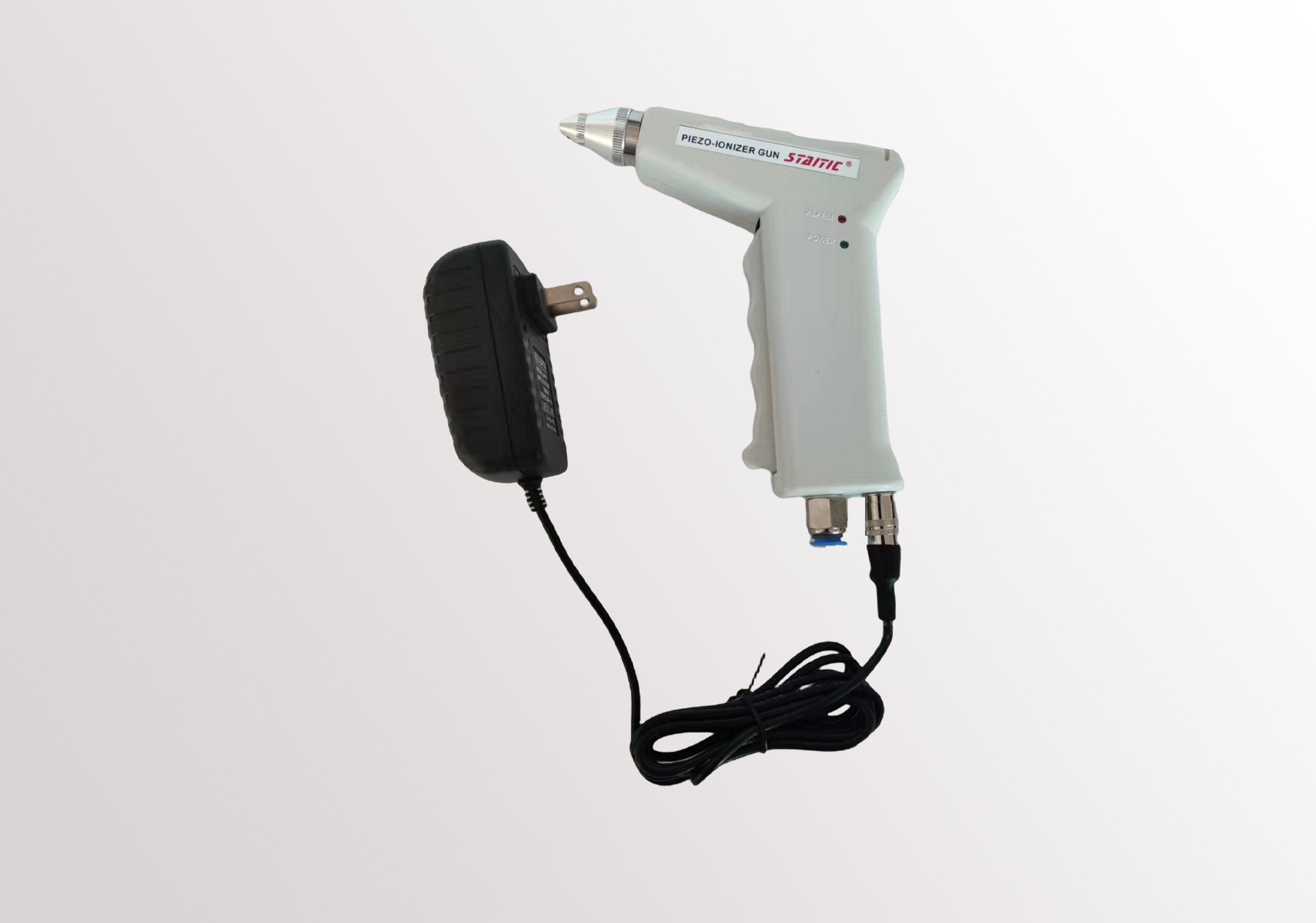 ST-326F 高頻離子風(fēng)槍,內(nèi)置電暈放電生成離子的除靜電電極。它利用空氣離子中和帶電體的電荷,同時(shí)具有吹掉帶電體上塵埃的功能。它小型輕量,易于握在手中。另外,因?yàn)閮?nèi)置超小型壓電變壓器,所以不需要高壓配線,這與以往裝置的外置高壓發(fā)生器不同。